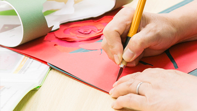 「彫紙アート」は下絵を元に紙を切っていきます。絵を描くのはちょっと苦手…という人も大丈夫!沢山の下絵があります。