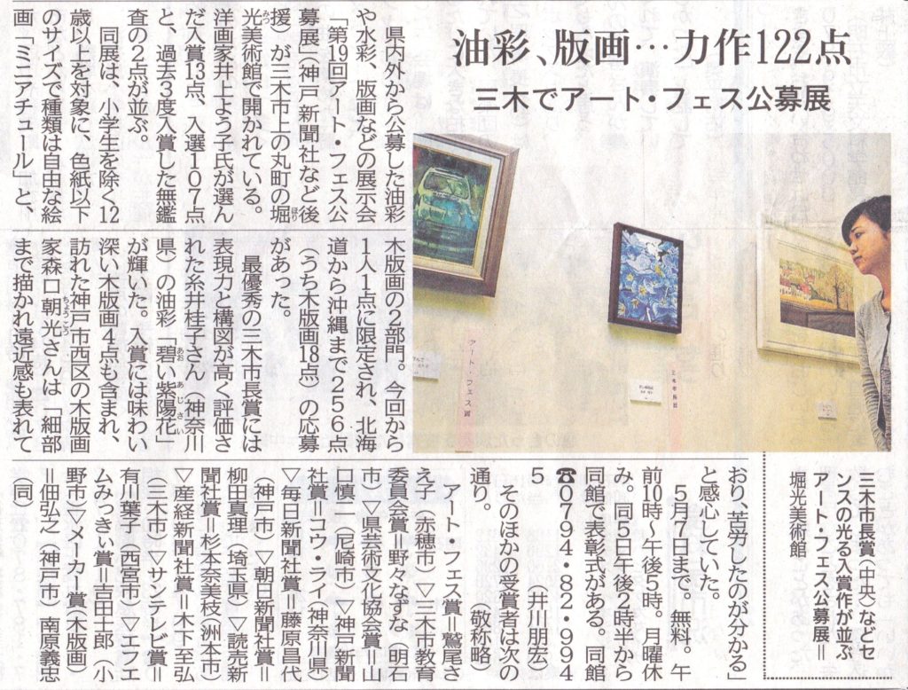 • 第19回アート・フェス公募展「読売新聞社賞」受賞
